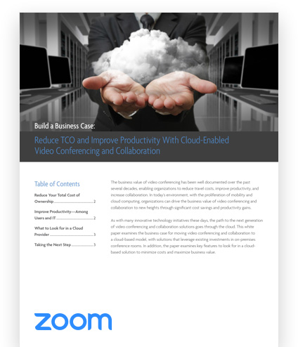 As with many innovative technology initiatives these days, the path to the next generation of video conferencing and collaboration solutions goes through the cloud. This white paper examines the business case for moving video conferencing and collaboration to a cloud-based model, with solutions that leverage existing investments in on-premises conference rooms. In addition, the paper examines key features to look for in a cloud-based solution to minimize costs and maximize business value.